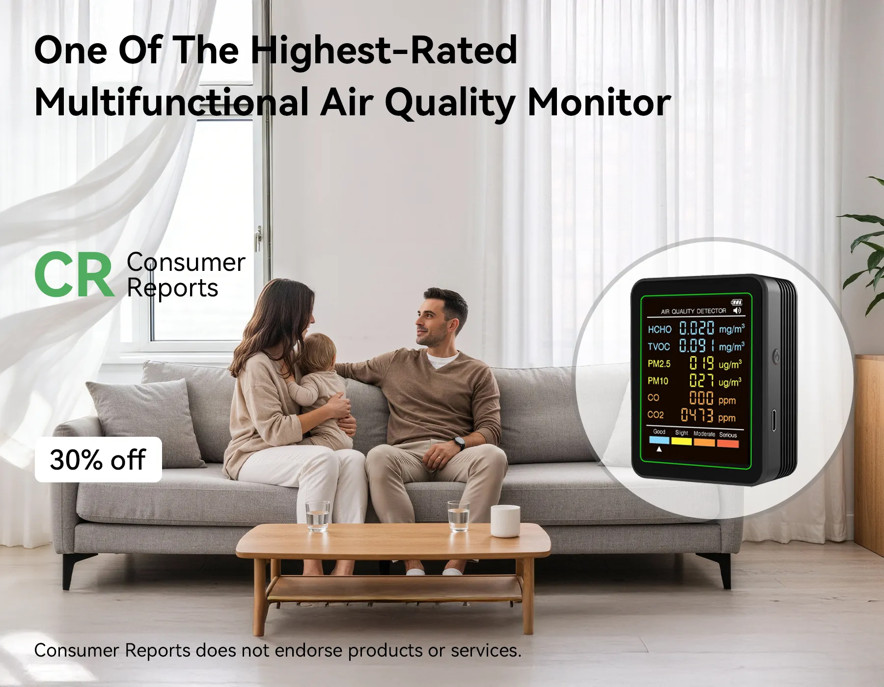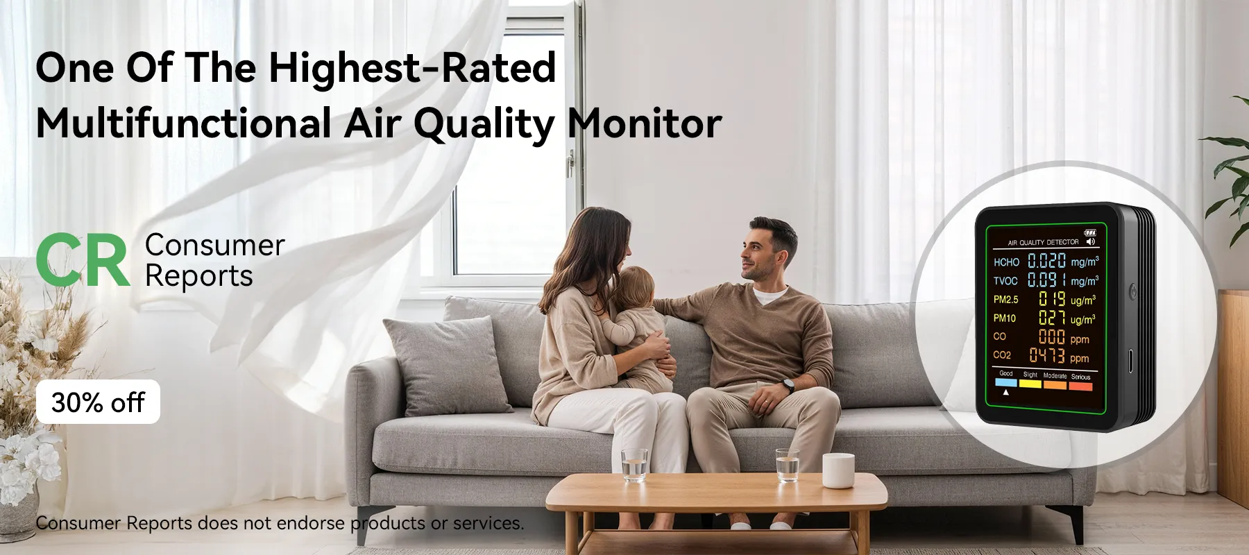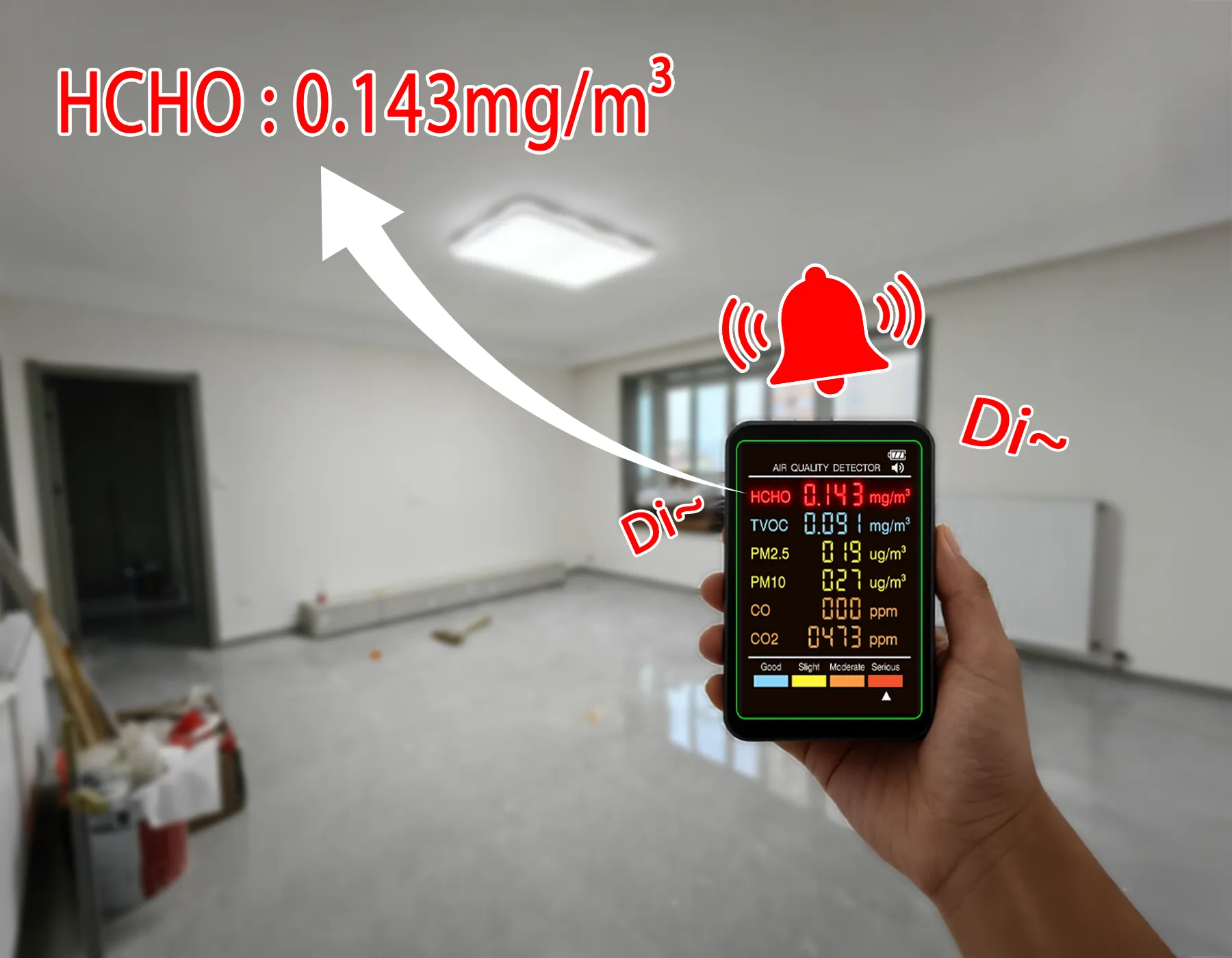 - Comprehensive Detection: Detects formaldehyde, PM2.5, CO, CO2, and more.