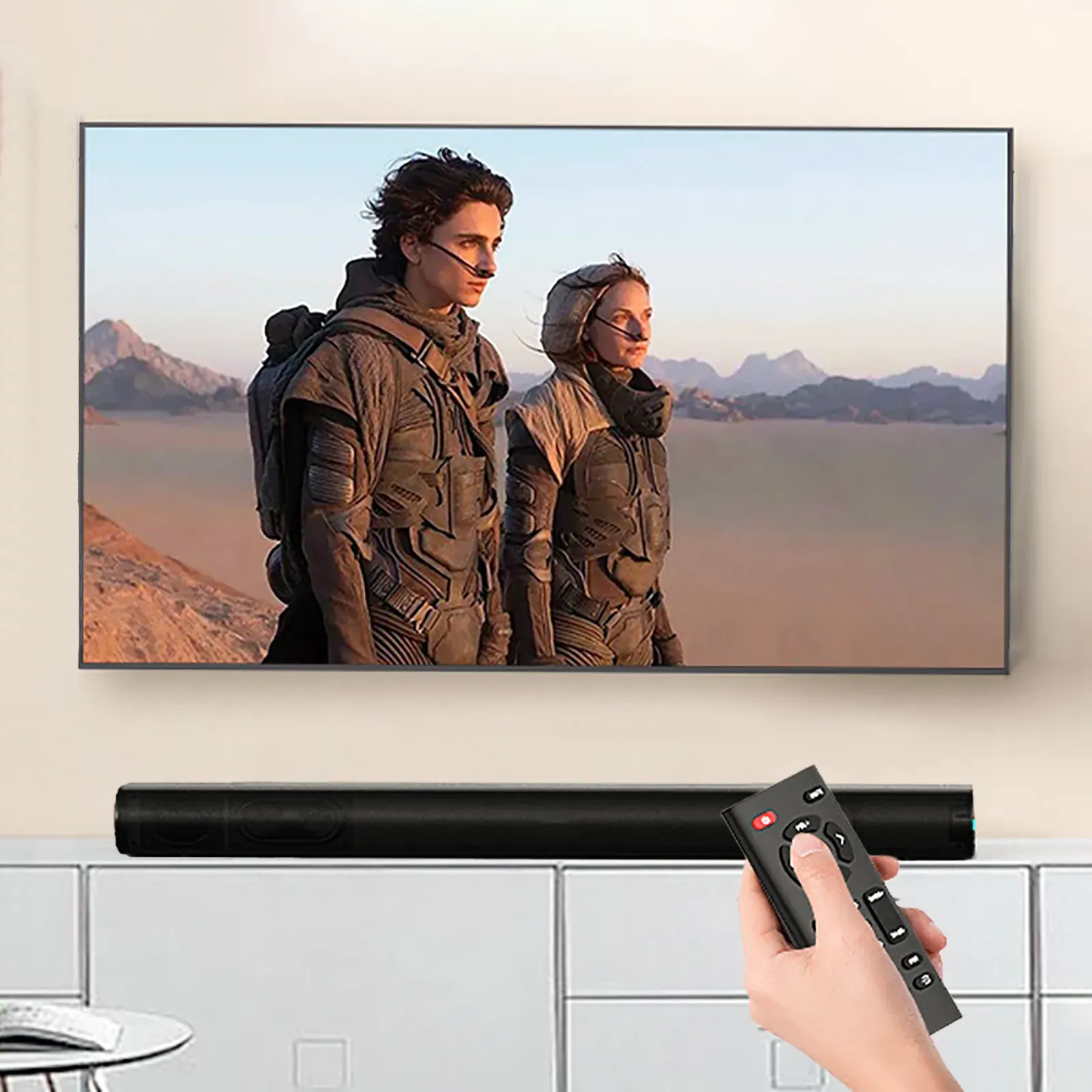 The soundbar delivers exceptional sound quality that immerses you in a surround sound experience, completely transforming the way you enjoy movies, music, your favorite sports, and games.